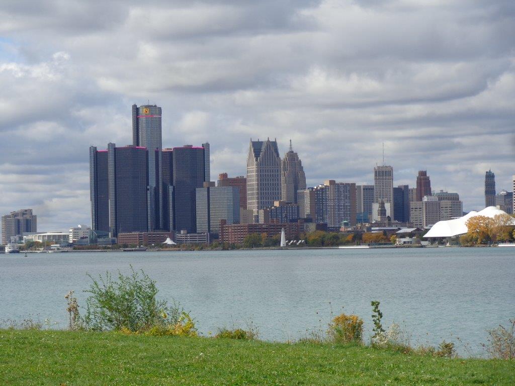 There is a terrific view of Detroit from the southwest end of the island, not too far from the fountain.