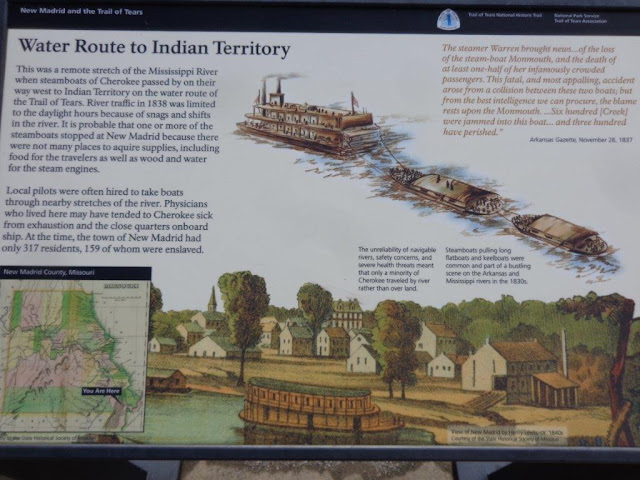 The Trail of Tears runs through this town, as well. The Trail of Tears is the route forced upon the Cherokee as they were forced from their homes in the southeast and sent to reservations in Oklahoma. This photo shows boats full of families, towing other boats full of families, being taken to new lands.