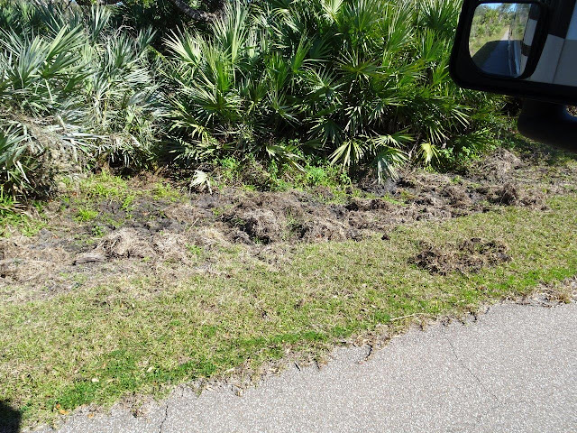 Whenever you see an area that looks as if it had been rototilled, that is pig damage. Wild hogs are extremely common and use their snouts to dig up grubs and roots, causing a lot of damage as a result.